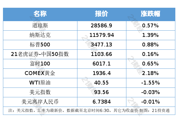 上周五,道指涨0.57%,报28586.9,周涨3.27%,创8月以来最大周涨幅。纳指涨1.39%,报11579.94,周涨4.56%,标普500指数涨0.88%,报3477.13,周涨3.84%,均创7月初以来最大周涨幅。