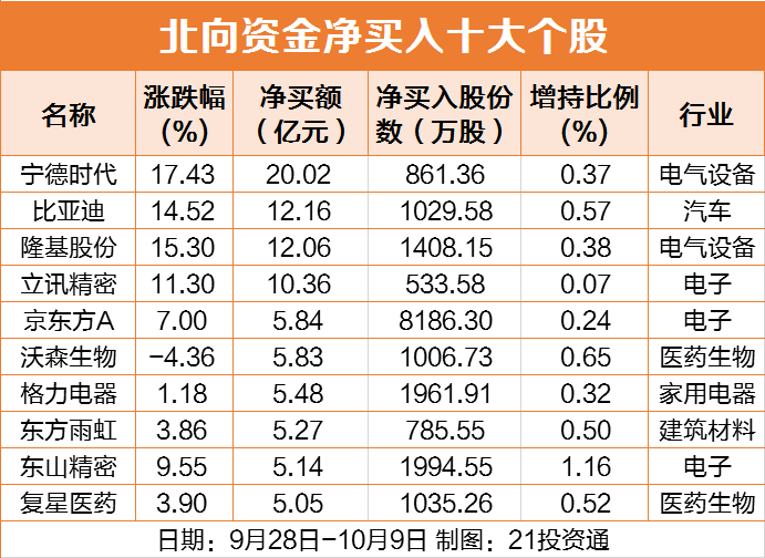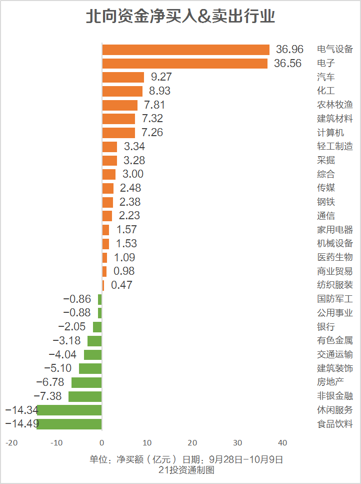 叠加节前来看,近4个交易日,北向资金增持了18个行业,其中电子、电气设备的净买入金额均超36亿元;其次是汽车行业,净买入金额为9.27亿元。