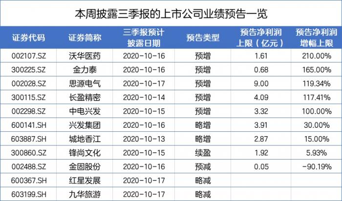 本周(10月12日-10月17日)将有包括智飞生物(300122.SZ)在内的56家上市公司披露2020年三季度业绩报告。有12家公司已提前披露业绩预告,8家预增,4家预减。