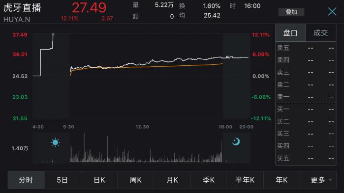 斗鱼美股盘前停牌,停盘前一度涨超16%。虎牙涨超12%。