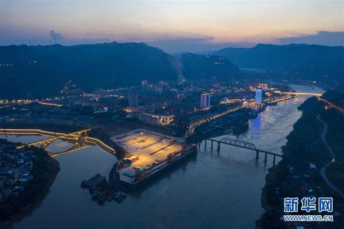 “万里长江第一港”水富港扩能工程稳步推进,建成后将成为云南最大内陆港口和多式联运的枢纽(8月10日摄,无人机照片)。新华社记者江文耀摄