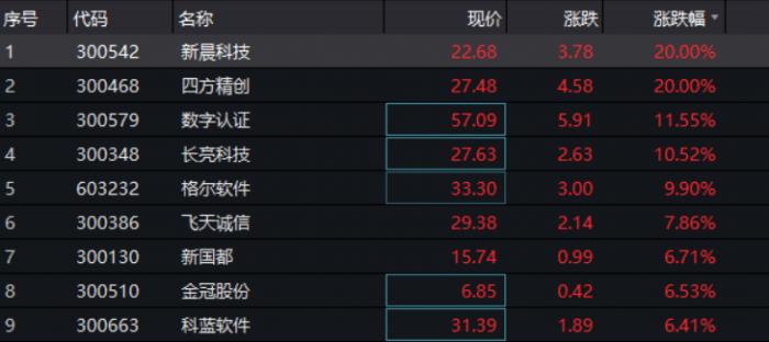 数字货币板块高开,盘中板块飙升,新晨科技、四方精创涨停,数字认证,长亮科技涨逾10%。
