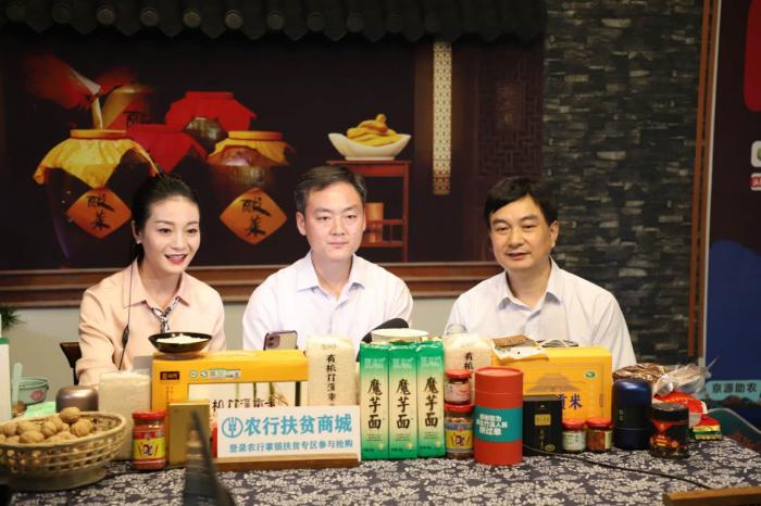 十堰竹溪县副县长、农行十堰分行副行长为竹溪贫困县特色农产品直播带货。