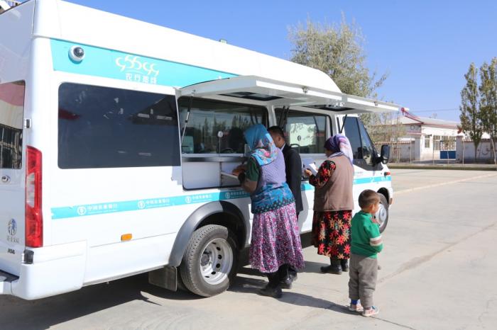 农行青海大柴旦支行为当地农牧民提供移动金融服务。