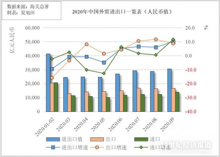 9月当月的数据更为亮眼:9月中国进出口总额达3.07万亿,同比增长10.0%,其中出口1.66万亿,同比增长8.7%;自外进口1.41万亿,同比增幅高达11.6%,当月的进出口增速、进口增速双双创下年内新高。