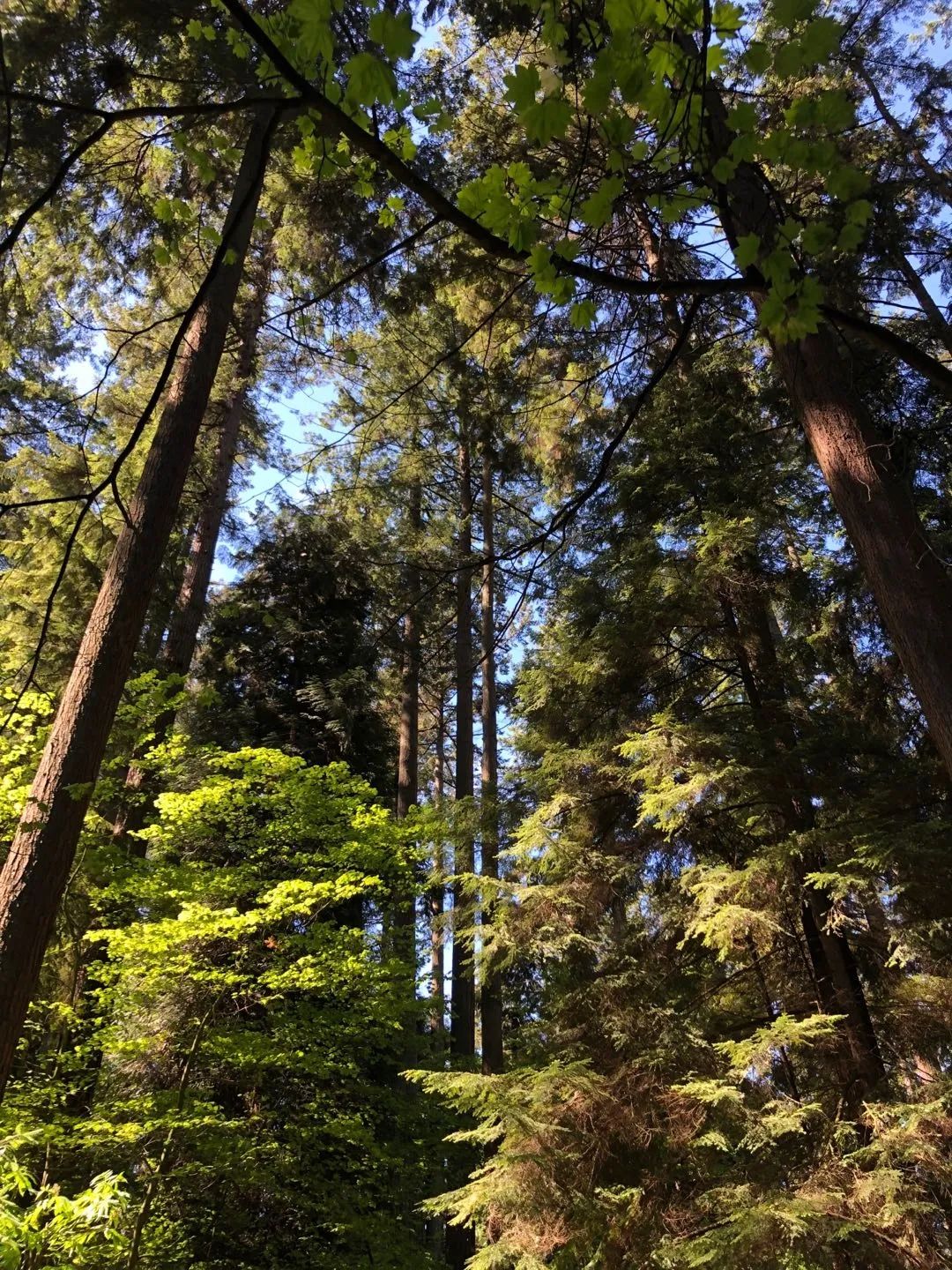 这份愧疚之心,在去年五月到达了沸点。一次偶然的机会,我加入了一个森林疗法的活动。这个体验的地点,离加拿大温哥华并不远,就在城边的史丹利公园。史丹利公园虽然叫公园,人工景物很少,地上头上的空间,都被6000亩红杉树原始森林占据。红衫树是世界上最高的树种,高度最高120米,树龄五百甚至千年。森林疗法全长两个小时,导师是加拿大原住民酋长的后代。
