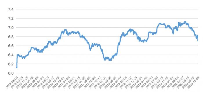 图1:2015年8月-2020年10月人民币兑美元走势变化情况