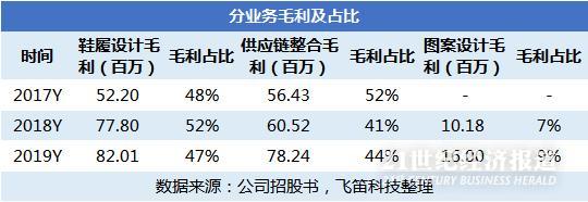 可见,中胤时尚三大业务中,供应链整合业务收入占比最大,但毛利率最低,鞋履设计和图案设计毛利率较高,但收入占比低。