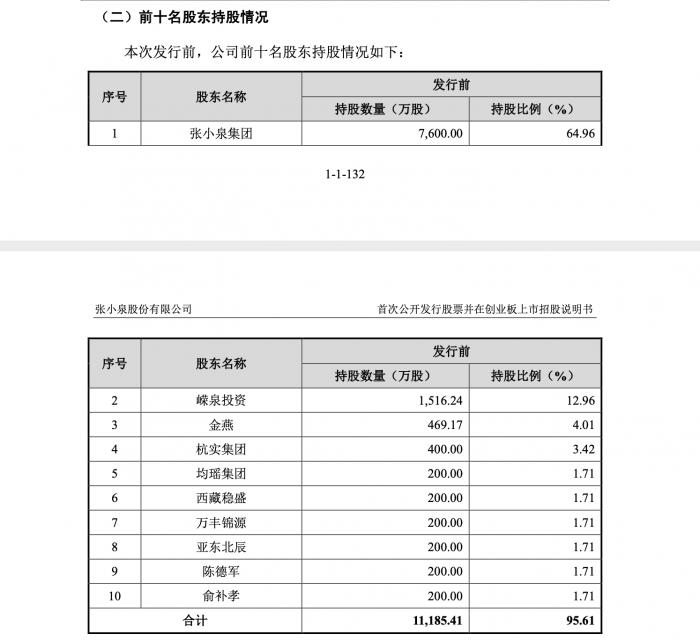 招股书可知,张国标、张樟生兄弟、张国标之子张新程等三人为张小泉实控人。本次发行前,三人共持有公司 71.83%的股份。
