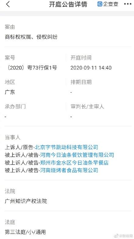 今日头条起诉今日油条商标侵权,后者还申请注册饼多多、快手抓饼等