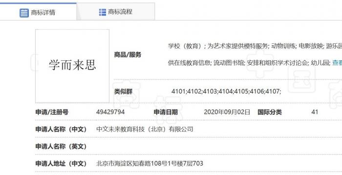 事实可能并非如此简单。21世纪经济报道记者获悉,就在山寨海报上线之前11天,中文未来申请了“学而来思”商标,目前该商标的流程处于等待实质审核阶段。