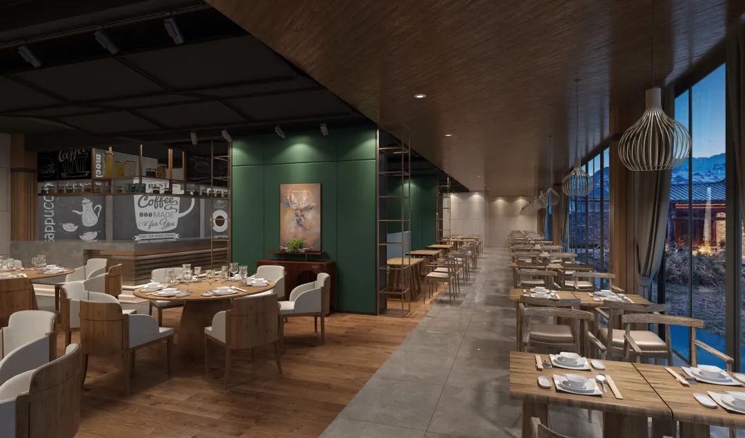 酒店拥有精致时尚的全日制餐厅和5个高端典雅的中式包厢,可同时容纳400人共同就餐,高大落地的玻璃窗,让宾客可以在欣赏湖畔美景的同时享受纯正的自然美味。