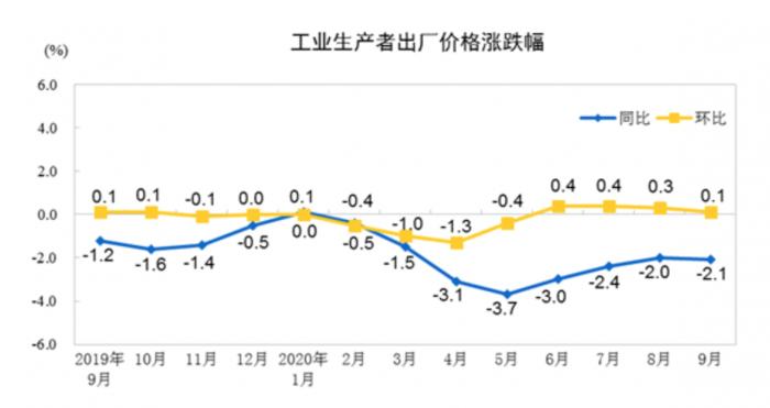 9月全国工业生产者出厂价格(PPI)同比下降2.1%,较上月回落0.1个百分点。若从同比增速来看,PPI似乎有所走弱;但是,9月PPI环比上涨0.1%,虽然有原油价格拖累,但工业品整体价格仍在温和恢复。