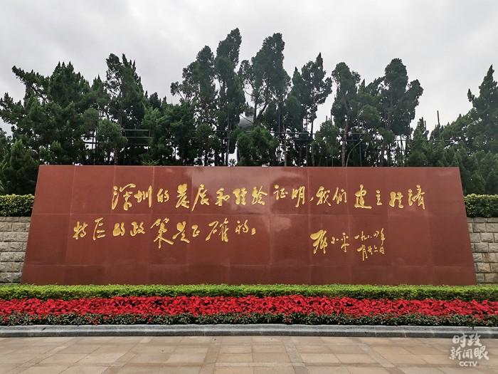 △邓小平铜像北侧是一块长达13米、高4.35米的花岗岩石墙,石墙北面镌刻着邓小平同志1984年视察深圳时的题词:“深圳的发展和经验证明,我们建立经济特区的政策是正确的。”(总台央视记者王冰拍摄)