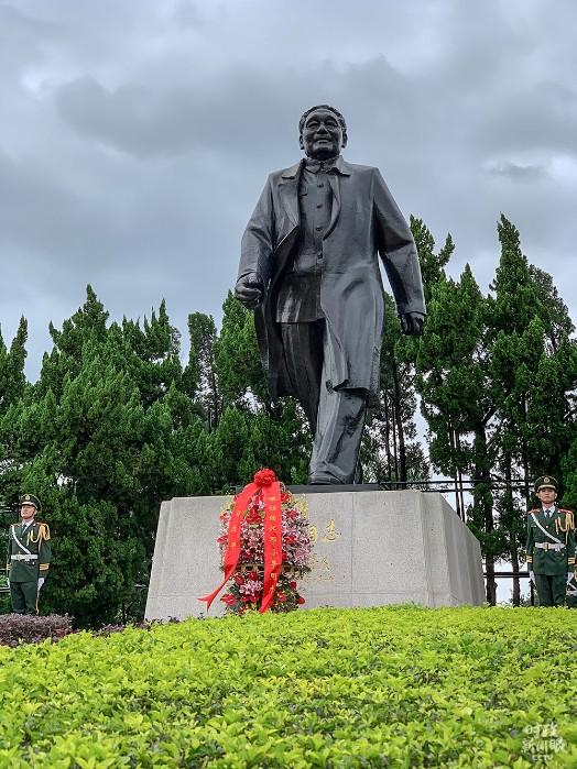 △总书记当天向邓小平铜像敬献花篮。(总台央视记者段德文拍摄)