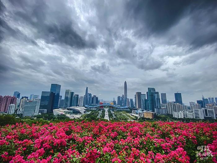 △从莲花山公园俯瞰深圳(总台央视记者李辉拍摄)
