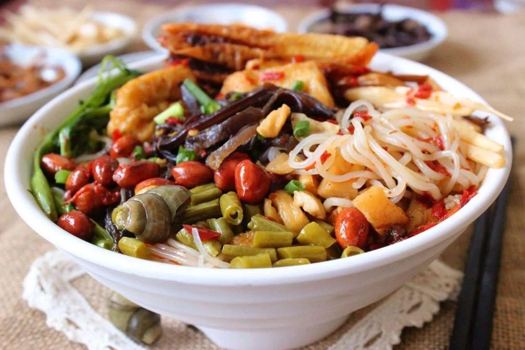 圆粉、螺蛳、酸笋、酸豆角、炸腐竹等,这些都是当地人吃了一辈子都爱吃的食物,它们只不过是被当地人偶然放到一碗粉里而已,有了如此文化基础的留存,螺蛳粉自然能成为一个有生命力的餐饮品类。