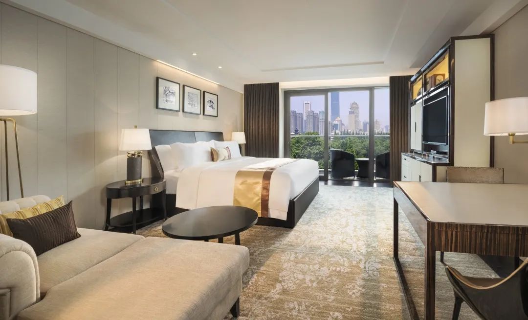 房间的设计自然也不能忽略,巨大的豪华睡床、松软舒适的沙发座椅、精致优雅的现代插画还有精心挑选的历史书籍,古朴雅致的传统家具与现代化智能家电相配合,让你在古典环境中感受现代科技的便捷。临窗眺望,长江路和总统府的景致也尽收眼底。