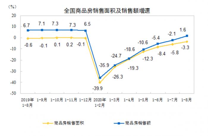 从国家统计局公布的最新数据来看,全国商品房销售正在快速回温。1—8月份,商品房销售面积98486万平方米,同比下降3.3%,降幅比1—7月份收窄2.5个百分点。