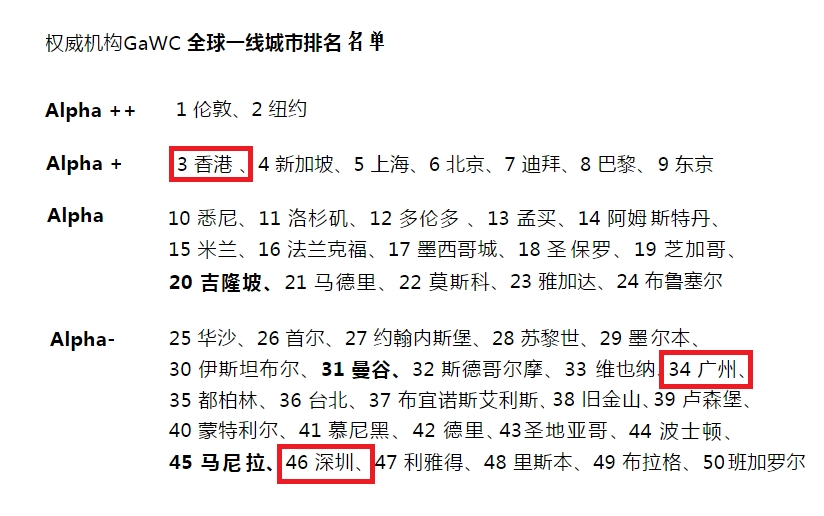 全球城市等级中,几乎再也找不到两个Alpha级别的世界一线城市,靠得如此之近。