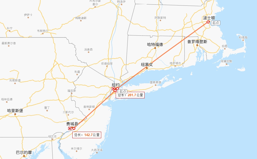 在美国的十大都市区中,纽约到波士顿之间的直线距离大约有280公里。就算是到费城(非Alpha级),也超过140公里。