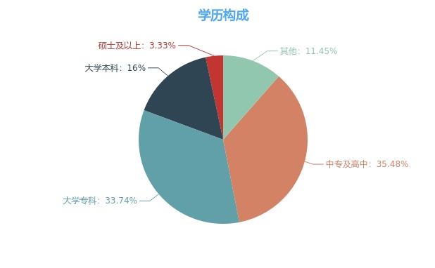 截至2019年12月31日,公司员工总人数为5338人,员工架构如下:
