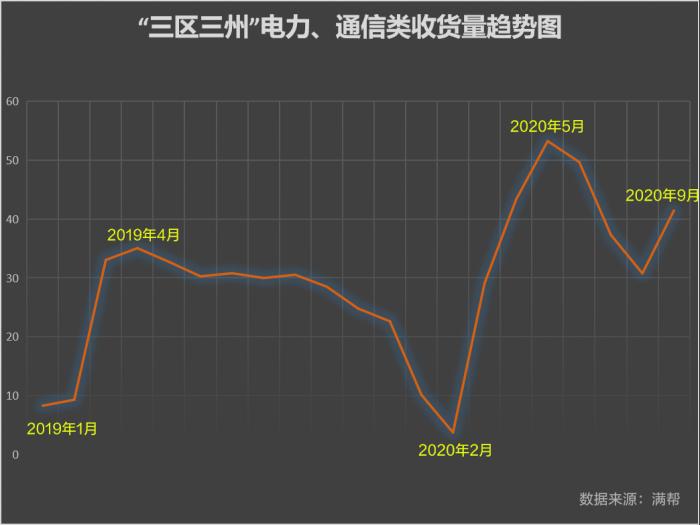自2019年1月至今,除疫情影响之外,“三区三州”的“电力设备”、“电工通信材料”收货量一直处上升态势,且在疫情中反弹十分迅速。