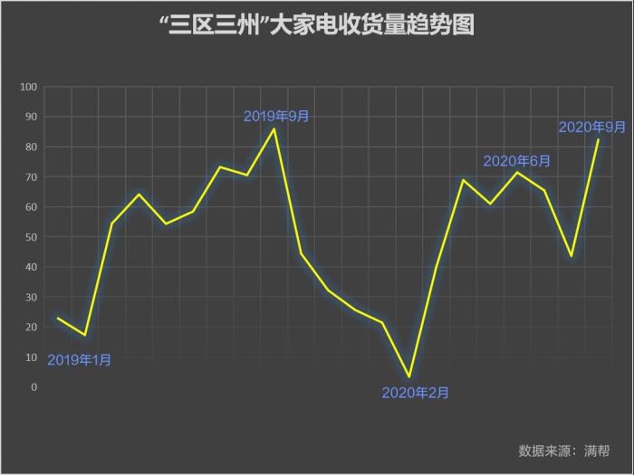 收入高了,通上电了,大家电搞起来。“三区三州”近两年大家电的收货量稳定。虽经历了疫情,今年1到9月的收货量仍达去年同期的83%。“三区三州”地区,大家电收货量前5的城市地区分别为喀什、阿克苏、和田、甘孜和拉萨。往该地区运家电的城市地区分别为乌鲁木齐、阿克苏、成都、喀什和广州。