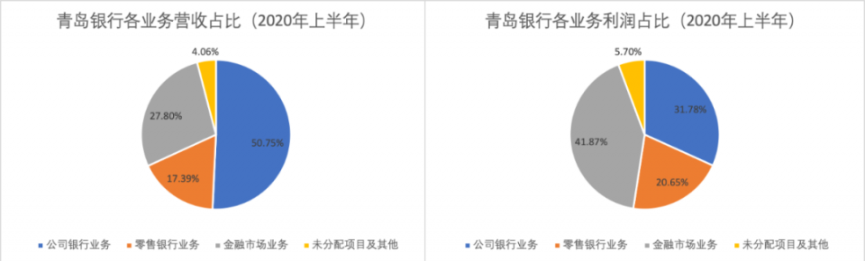 而从利润占比看,2020年上半年,青岛银行4成利润来自金融市场业务。
