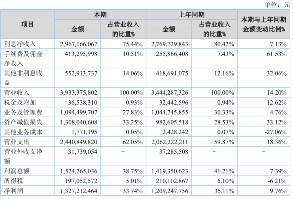 青岛银行盈利构成,源自银行财报