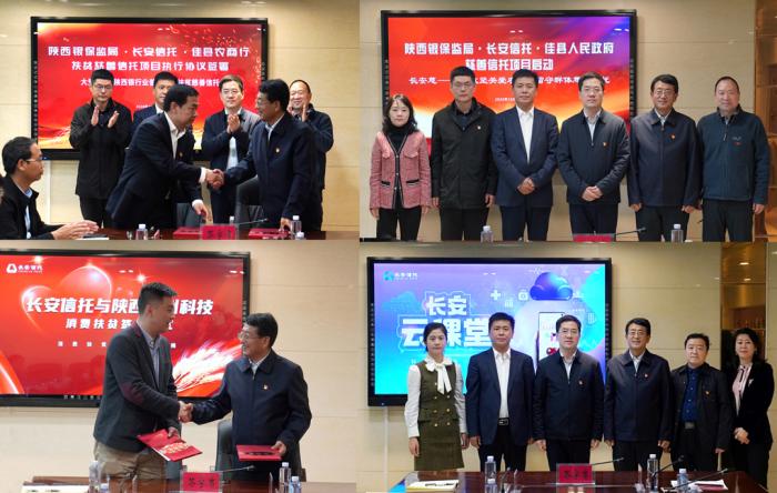 在启动仪式上,长安信托与陕西葭州科技有限公司签署消费扶贫协议,扶贫产品销售将从单一采购转向签约采购+线下促销+微店网销+直播带货的立体化销售模式。