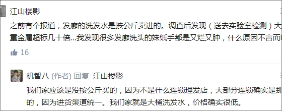 知乎上曾有一个问题:你所在的行业,有哪些外人不知道的?一位匿名用户就回答到,理发店洗发水进货价4元/公斤,质量差或含重金属。