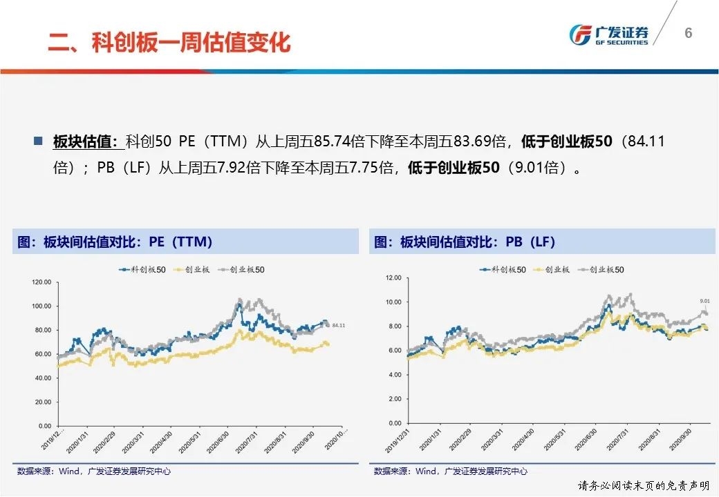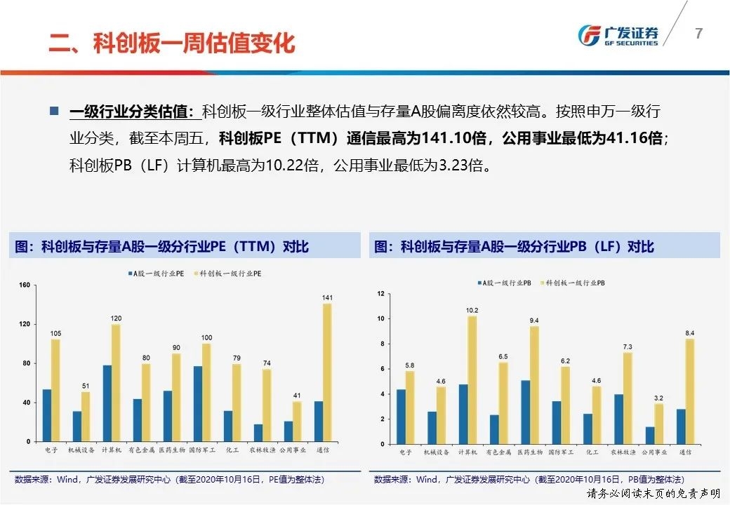 一周估值变化:①科创50PE(TTM)从上周五85.74倍下降至本周五83.69倍;②科创板PE(TTM)通信最高为141.10倍,公用事业最低为41.16倍。