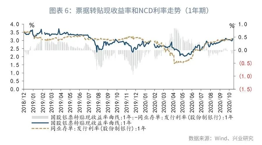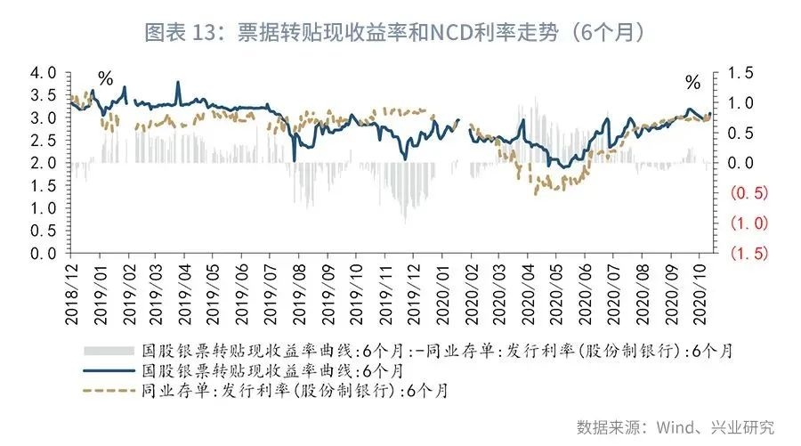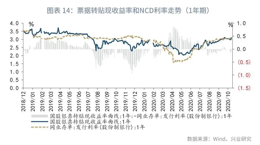 在上述供需双方矛盾持续的情况下,1年期NCD发行可能仍较为困难,或需通过进一步提价来提升对投资者的吸引力。从对票据利率影响的角度,1年期NCD利率的上行,将带动票据利率的进一步走高。国庆节后,票据利率在跨季后的短暂回落之后,已经快速回升至9月末的水平。