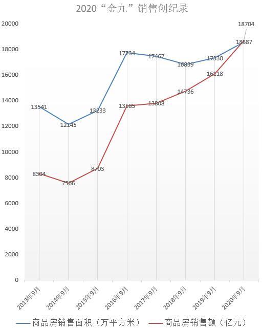 9月,全国商品房销售额达到18704亿元,商品房销售面积达到18587万平米,在历年的“金九”中,今年也是销售面积和金额最高的一年。