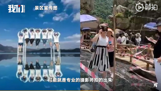 然而仅仅在开放两天后,有网友就上传了一段视频,发现景区的宣传照片和网友拍摄的实景:反差巨大。果真是“照骗”!