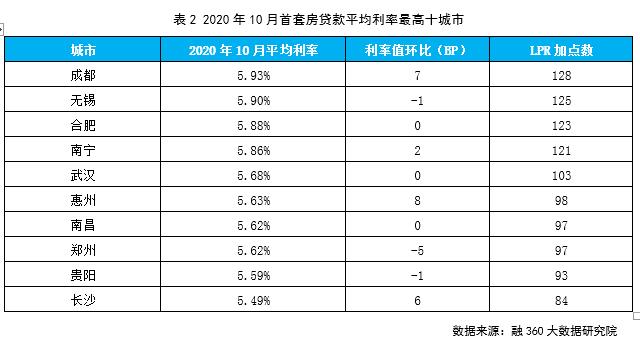 二、城市:10月房贷利率上涨城市数量占32% 5地涨幅超5BP
