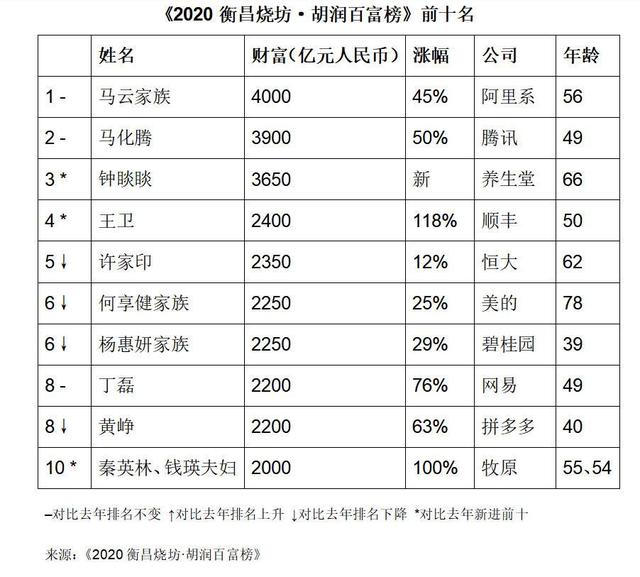 值得关注的是,农夫山泉创始人钟睒睒今年首次上榜,以3650亿元位列第三,被媒体报道评论称为“大黑马”。