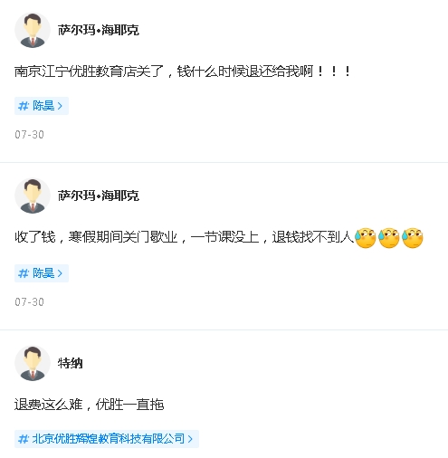 其实从2019年下半年以来,优胜教育在全国各地就舆情频发,主要涉及培训退费难、办学不规范、拖欠员工工资等诸多方面。