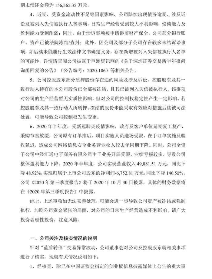 10月20日早间,深交所亦再次公告,“蓝盾转债”(123015)盘中成交价较前收盘价首次上涨达到或超过20%,自今日09时48分49秒起对该债券实施临时停牌,于10时18分50秒复牌。