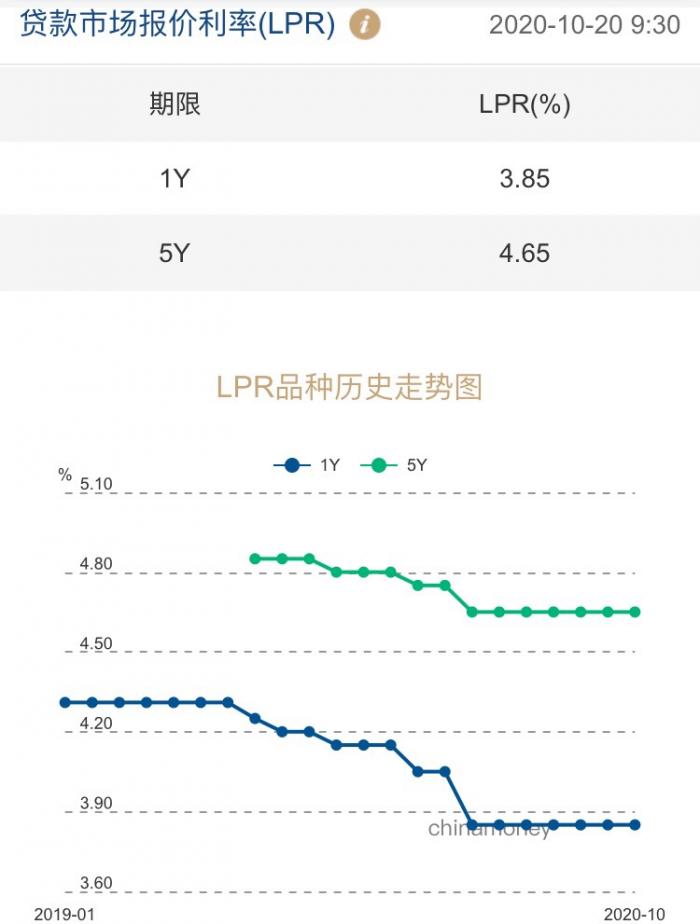 中国10月1年期贷款市场报价利率(LPR)为3.85%,预期为3.85%,上月为3.85%。5年期贷款市场报价利率(LPR)为4.65%,预期为4.65%,上月为4.65%。