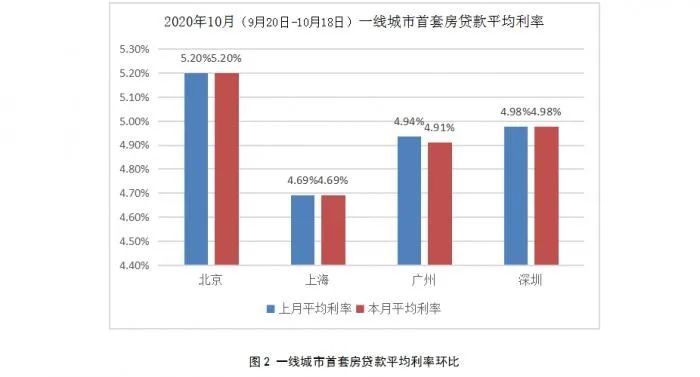 10月份,有9个城市首套房贷的平均利率低于5%,其中上海最低,为4.69%。