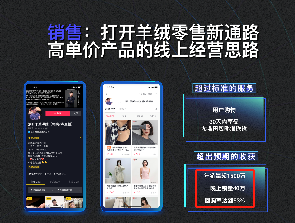 到了开始变现后,一晚上的销量达到40万元,2019年一年卖掉了1500万元的货品。