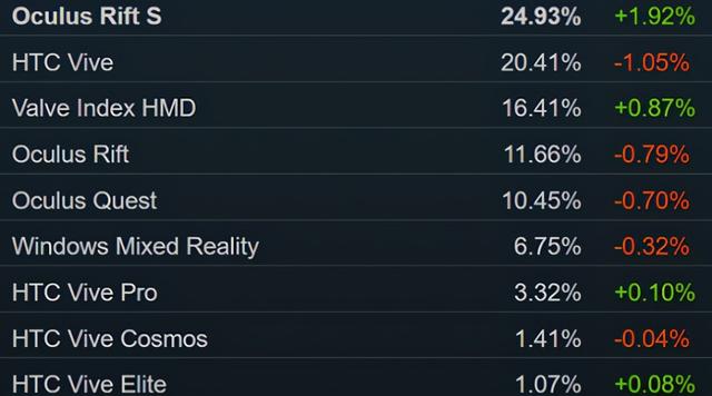 从深耕VR的企业状况来看,一份榜单数据显示,Facebook旗下的Oculus Rift S出货量依然居首,其另外两款产品也上榜,HTC则有四款产品上榜,看得出来Facebook和HTC在VR行业中依然有着很强的实力。