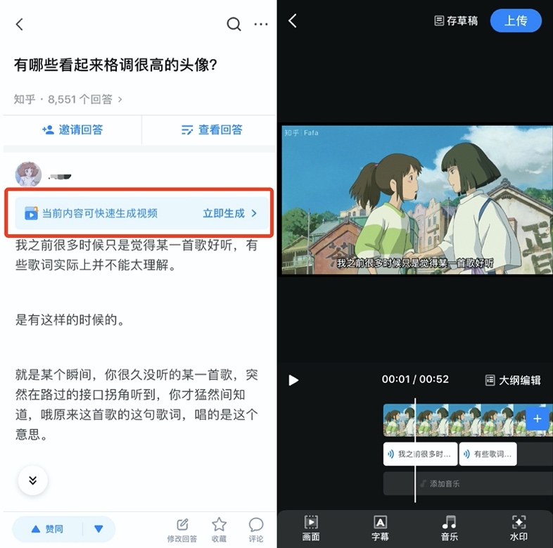 在此之前,知乎内测上线了站内图文转视频工具。据业内评测,使用该工具,“视频小白”也能轻易制作出接近专业级别的视频,极有可能大大降低图文转视频的门槛。