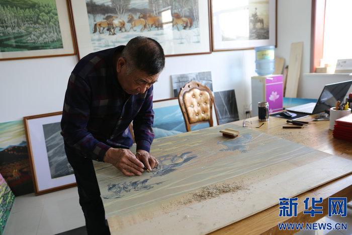 62岁的牧民版画家照那木拉画了近50年版画,没想到在花甲之年有了自己的画室。条件好了,创作热情更高了。今年以来,照那木拉已经创作了10多幅版画作品,实现收入4万多元。