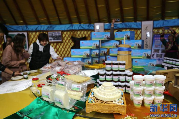 洪格尔巴特尔家庭牧场手工制作的奶制品等蒙古族传统食品。新华网 曹桢摄