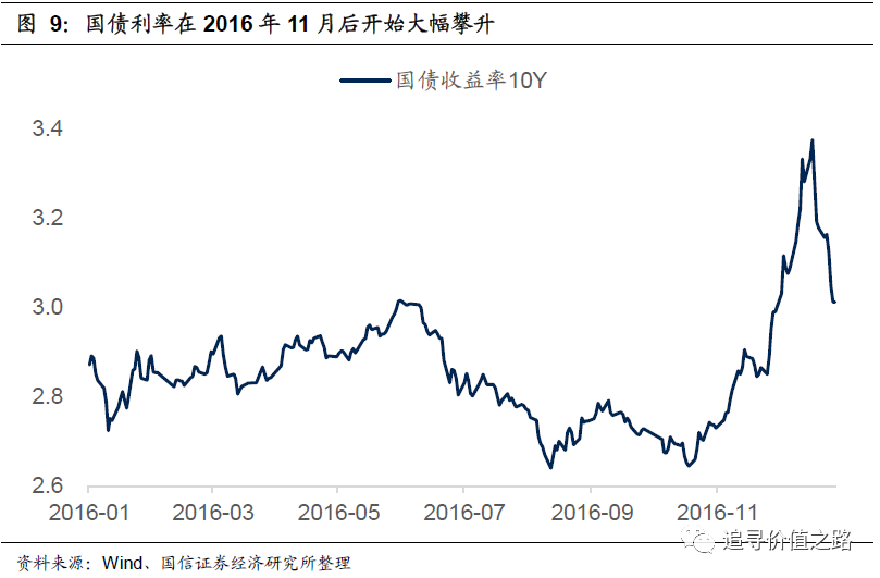 所以结果是,一直到2016年10月份,在PPI已经大幅攀升且转正的背景下,债券利率还在低位甚至创新低。然而,到了11月以后,国内债券利率在最后两个月出现了快速大幅的飙升。![]()