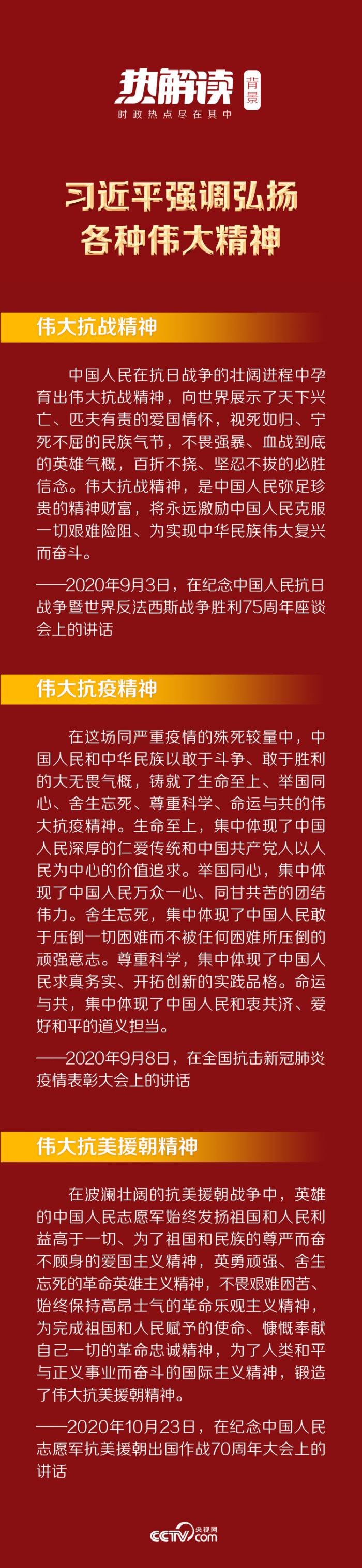 今年以来,总书记多次诠释各种精神:伟大抗战精神、伟大抗疫精神、伟大抗美援朝精神……在历史回响中,带我们接受思想洗礼,汲取奋勇前行的精神力量。