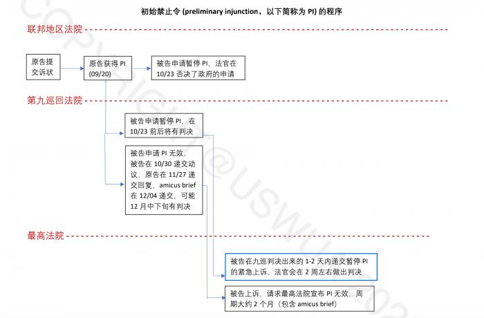 随后,美国司法部代表白宫向加州北区联邦法院递交了动议,申请暂停初始禁止令的实施。不过当地时间10月23日,美国旧金山地方法院法官驳回了美国司法部关于中止初始禁止令的请求。